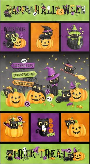 Double Bubble Kitty Trouble Cute Black Cat Halloween Panel