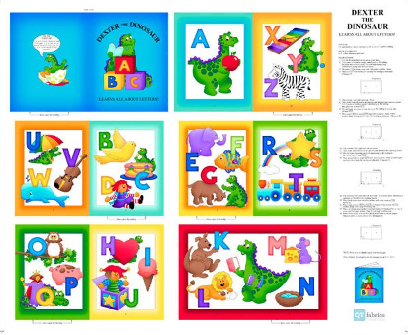 Fabric Books Dexter the Dinosuar Learns about Letters Book Panel